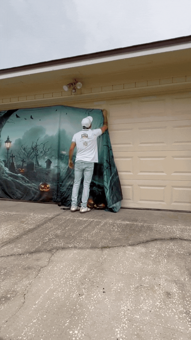 Turn your plain garage into a spine-chilling scene effortlessly. With our garage door banner, set up is a breeze, allowing you to focus on enjoying the festivities with family and friends.Crafted from high-quality polyester, this banner withstands the elements, ensuring it lasts through multiple Halloweens. Enjoy a reliable decoration that offers long-term value and consistent Halloween spirit🎃